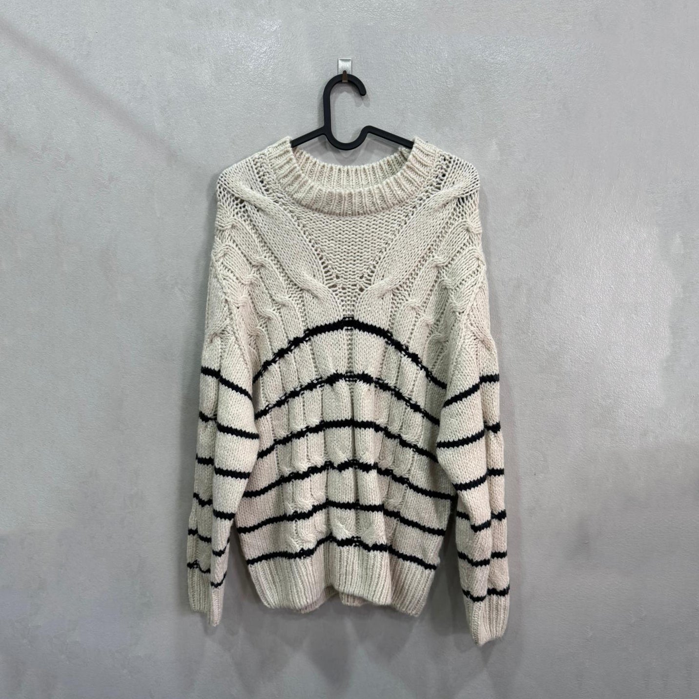 Camisola Creme Tricot Canelado às Riscas – Tamanho 38/38 – Grade A