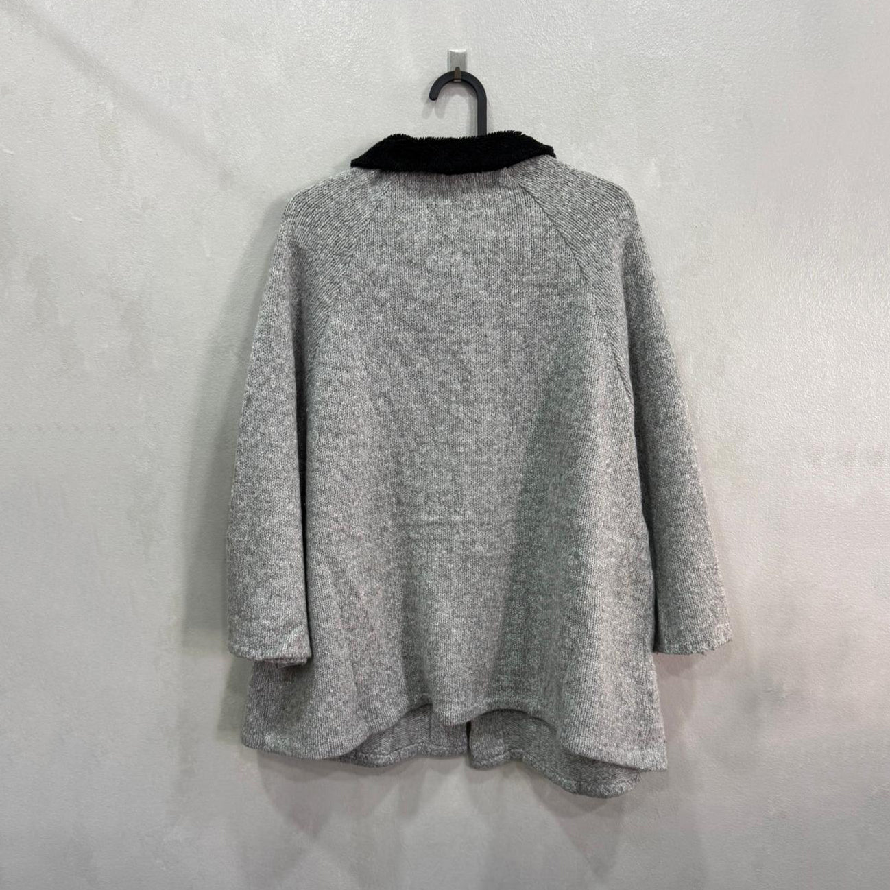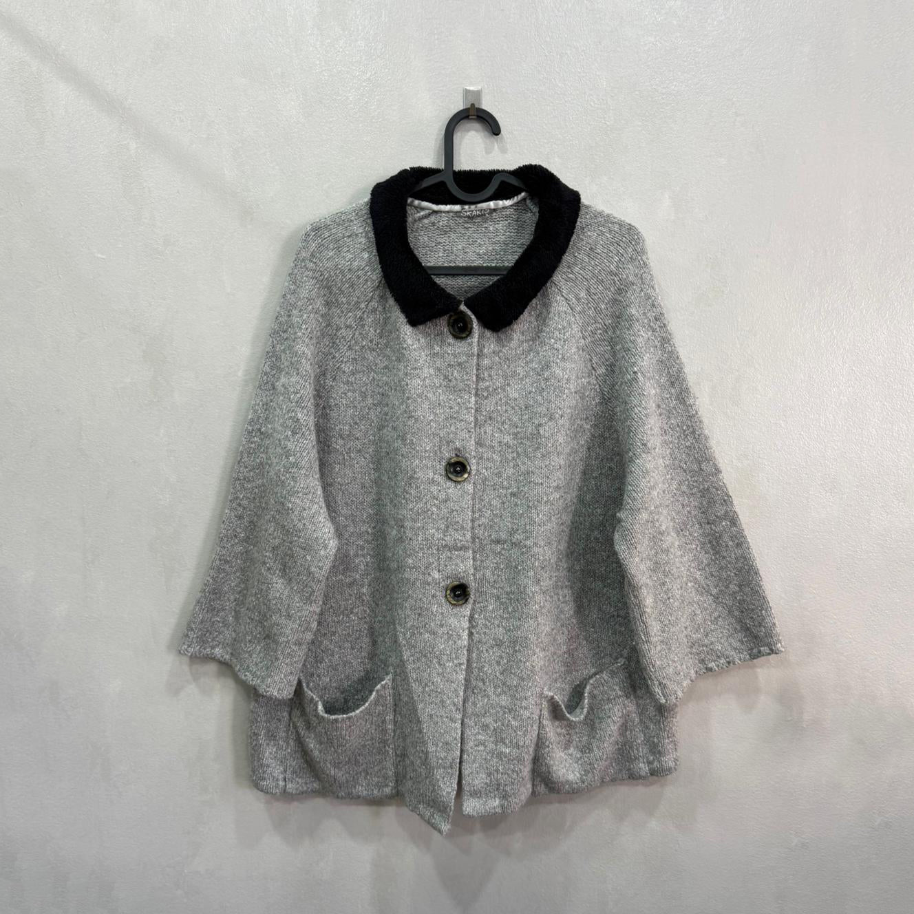 Casaco elegante em malha cinza com gola preta de textura suave, trazendo aquele toque sofisticado sem esforço. Modelagem ampla, confortável e moderna, com botões frontais grandes e dois bolsos que dão charme extra. Fica perfeito para compor looks invernais mais clássicos ou dar um upgrade num visual casual.